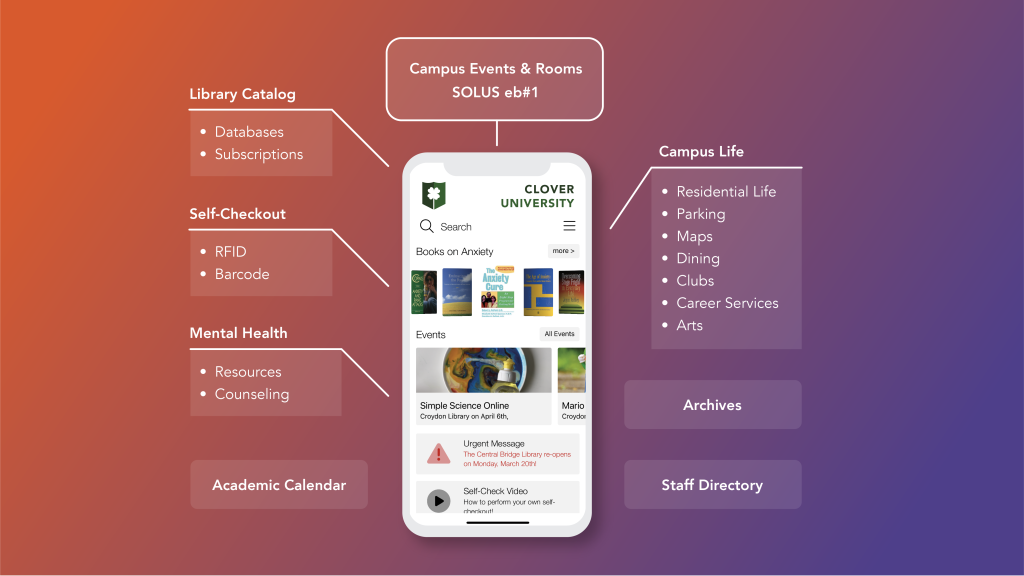 “With our real-time Content Management System (CMS), campuses have the ability to not only to access their library, databases and subscriptions, etc., but can easily create links to campus services such as maps, faculty directories, dining, parking, mental health resources, athletics, faculty directories, campus news, etc. We are hearing there is a real need for a next generation events and room booking platform that tightly integrates with the mobile app – an all-in-one solution for students and faculty.”